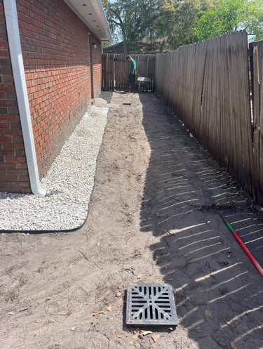Southside Outdoor Services installs French drains, channel drains, and foundation drainage systems across Jacksonville and surrounding areas. Our drainage solutions redirect water away from lawns, foundations, and hardscapes to prevent standing water, erosion, and water damage—built for Northeast Florida rain and soil conditions.